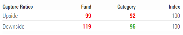 Likewise, the downside capture ratio is 119, which means that the fund has captured 119% of the downside returns of the Index.
