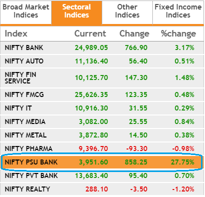 As you can see, the PSU Bank index shot up 27.75% at opening.